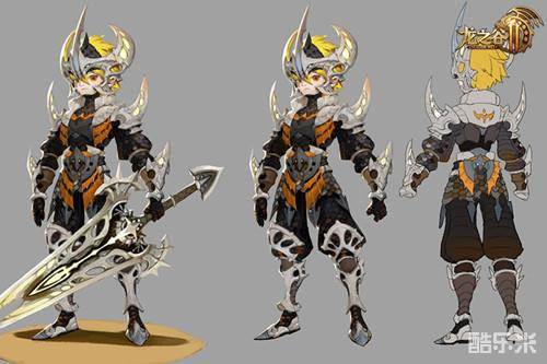 顾名思义,此套装以沙漠为基础取黄沙金日之意,龙角和衣服材质的设定参考沙漠龙,鳞甲贴片的设计让此套装浑身散发着一股大漠苍莽的气息,想来只有最强的玩家方能驾驭。
