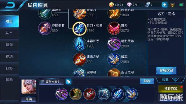 六神装:暗影战斧+影忍之足+泣血之刃+破甲弓+名刀·司命+破军