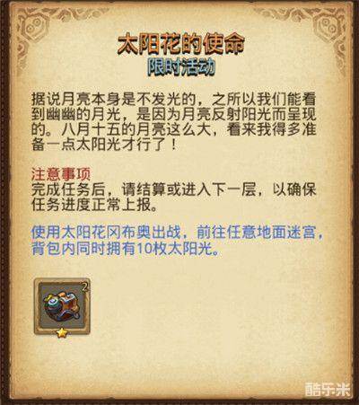 使用太阳花冈布奥出站,前往任意地面迷宫,背包内同时拥有10枚太阳光