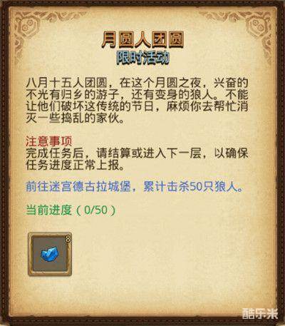 前往迷宫德古拉城堡,累计击杀50只狼人