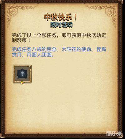 中秋快乐:完成任务八戒的思念、太阳花的使命、登高赏月、月圆人团圆。