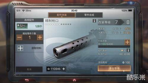 这次更新后我们能够在7级以上的配件中随便放入任何级别的配件了,比如我们放入一个1级的能够给7级配件100点经验,同时给了我们一个属性,将我们的配件提升1级的效果。