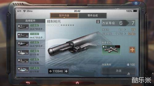 首先我们点开配件的界面,这时候我们看到,7级以上的配件界面发生了改变,已经不再是用同级别的配件了,而是改成了经验形式的。