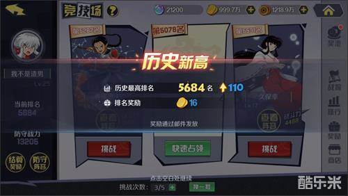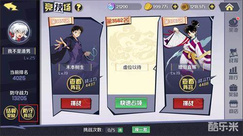 (1)挑战前,可先进入“防守阵容”处选择自己的上场阵容,再可以根据自己的防守阵容计算出的防守战力来选择挑战对手