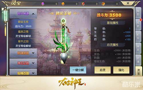 游戏“世外桃源”篇灵宝仿佛就是开启这片乐土的钥匙,玉笔、书简、灵扇,全部都是书房之物,造型优雅清新不带半点杀伐之气。如果你希望自己能成为乱世中不染世俗的逍遥隐仙,那么随身携带“世外桃源”就是最好的标识。