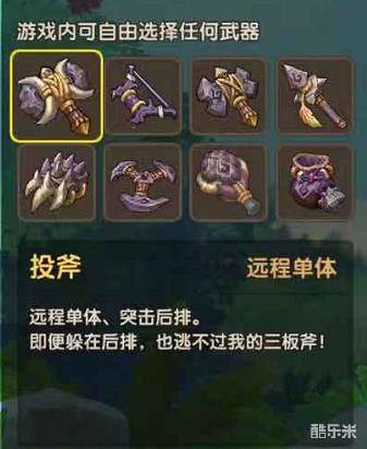 而投斧是攻击排第二的武器,但是相比斧在攻击手段上更加灵活和多变,可以直接攻击后排。特别是当你的队伍有强力全攻手的时候,可以绕开对手的前排肉坦,率先收割掉对方的后白输出手。而且附加的暴击概率,让投斧的输出也不会弱于斧头。