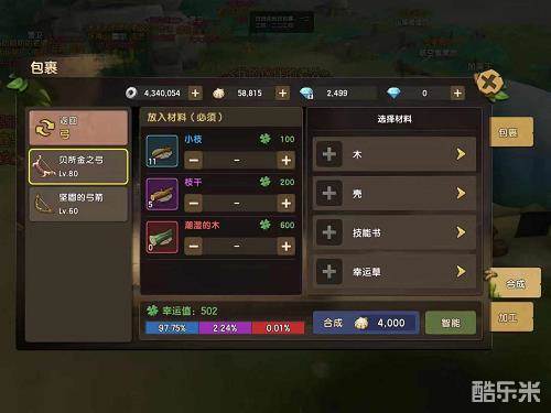 当幸运值足够高了,准备好足够的专属武器技能书和高级材料,然后就是女神眷顾的时候了,点击合成按键,等待属于你的极品武器出现吧!