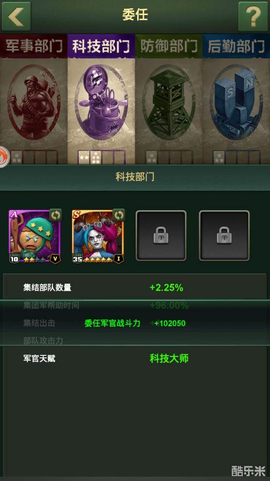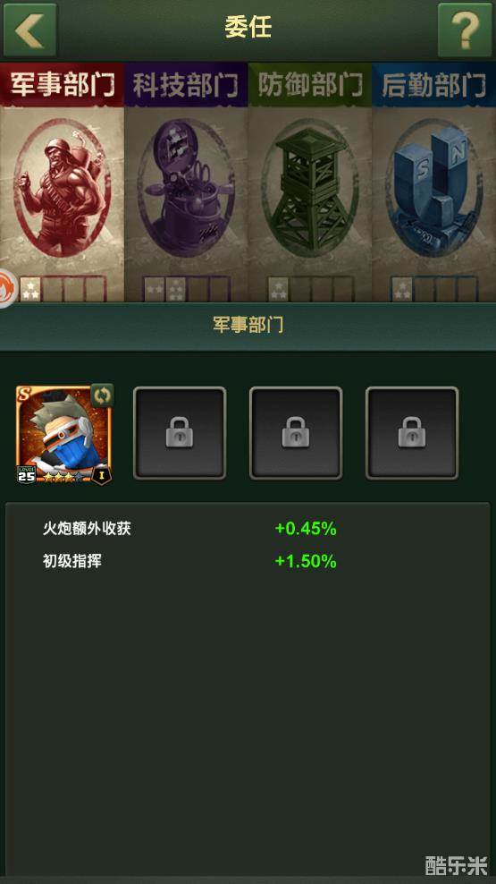 在兵人的世界中,委任部门分为军事、科技、防御和后勤四大部门。每一个部门对应特定的增益属性。