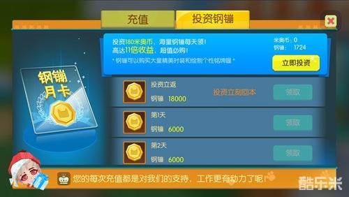 只需投资180米奥币,即可领取高达11倍收益的钢镚