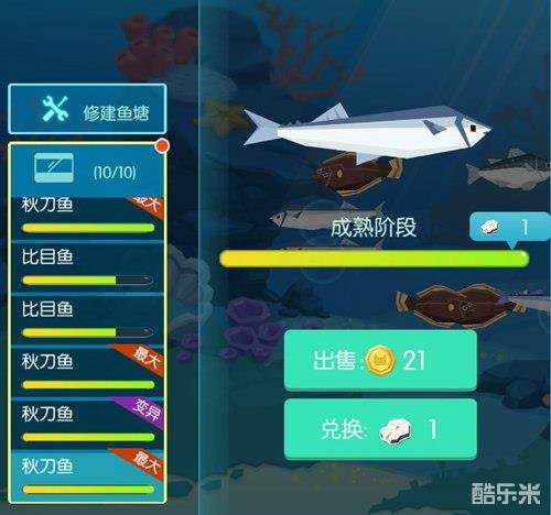 进入【农田】,滑动可看见【鱼塘】,利用【鱼苗】进行养殖,长大后即可出售换取大量钢镚。