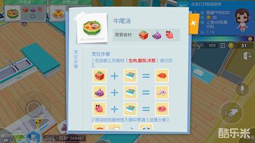 1.不同的菜有不同的菜谱,屏幕左上角会有菜谱显示哦,点击还能看到详细的做菜方法