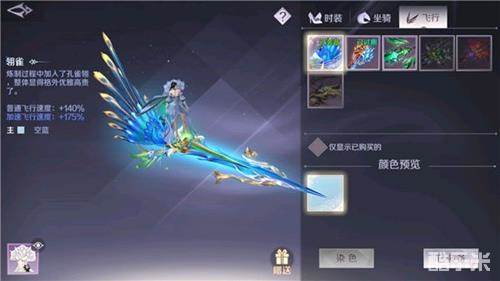 飞行器自然也可以获得不同的款式,在坐骑时装的旁边就是飞行器的试穿界面。在该界面中玩家可以看到各种各样特效十足的飞行器。想走高冷路线?没问题,挑个冷色系吧!想试试暖男路线?粉红色够暖了吧!只要你想,都可以在这里搭配出最适合自己的形象。飞行器额外款式和坐骑时装相同,也有增幅大小的区别,好的飞行器移速会高上许多。