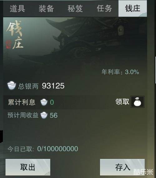 4.每天不用的银币是可以存在包裹第五个里面的钱庄的,每天早上5点会给利息,虽然不多,但是蚊子小也是肉啊。ps:友情提示,每天存满能给8000+银币呢,记得存满哦。哈哈