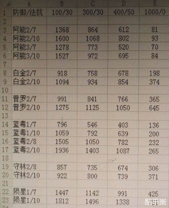 补充说明:下表计算中,守林人二技能3炮弹按每枚击中两名敌人,一共击中6人计算,由于天赋触发概率过低并未计算,实战中会有远程单位所以伤害会比表中略高,普罗旺斯开启技能以后始终攻击面前单位(且单位血量<80%)计算,陨星以平A三名敌人一技能触发攻击六名敌人计算(被动暴击已计算入内)