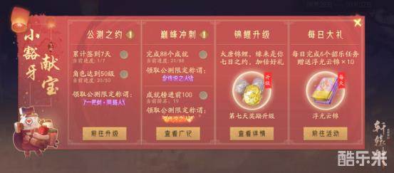 同时,累计登录7天且角色等级到达50级,可在公测时领取限定称谓“一把剑·同路人”。测试期间,大唐锦鲤抽奖活动将重磅加码,第7日更将送上加倍惊喜福利。本次测试中,达成88个成就,即可获得“传说之人”公测限定称谓;测试结束之时,进入成就榜前100名,更将在公测获得“传说之人”限定特效称谓,享受万众瞩目!