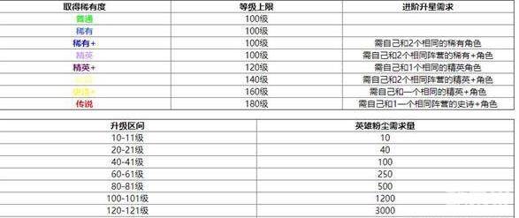 我在角色平均9X级时,就有机会合出黄色的史诗角色,当时觉得很爽,马上就消耗掉共3个精英+角色,导致升上100级时,精英+的角色不足5只,还卡了一阵子,後来只好继续累积钻石和友情点数抽英雄,再把几只卡在100等的角色,用马车的英雄重置功能退还资源後,集中给新合成到精英+的角色升级,才终於让所有的角色都超越100级後来在120, 140, 160级时,都有记取教训,以凑齐5只满足稀有度条件的角色优先,并努力的取得英雄粉尘XD如果金币足够,建议大家最好每天都用金币买一下,但後期需求量真的蛮大的,这边整理出一些可以获得英雄粉尘的渠道,给大家参考看看。