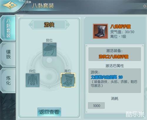 最后,还需要对八卦装备部件进行卦位激活,并将一整套八卦装备穿齐,使卦位套装属性生效,在后期,玩家已经准备好所有材料的时候,整个步骤一气呵成,不用特别复杂。