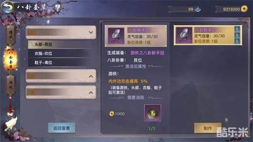八卦装备的打造也并不困难,首先,八卦装备制作的流程很简单,玩家只需要准备包括八卦装备部件、灵石、卦位牌子、金币等等在内的材料。