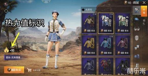 在商城界面,每套衣服和皮肤,都会在名字上边显示着该皮肤可以带来多少热力值,只要买了这套衣服,你就能获得相应的热力值。