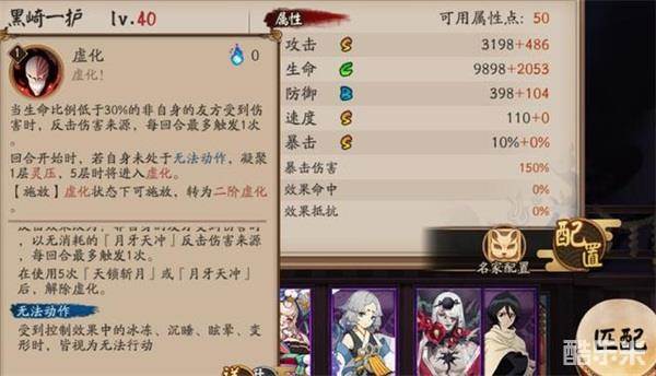 总结:作为常规的输出式神来说现在不能下定论到底是强是弱,个人感觉还可以,其想要爆发需要憋5回合,保证这5回合不挂才行,到时候才能触发强力的反击技能,但还是有个缺点就是二阶虚化的开启很需要考验玩家的意识,常规PVE能用,毕竟BUFF幅度很可观,不开二阶虚化作为常规打手来说和满BUFF茨木输出能力差不多,不过需要的回合数会稍微多点,但是一护有自我拉条看,一定程度弥补了这个缺陷。