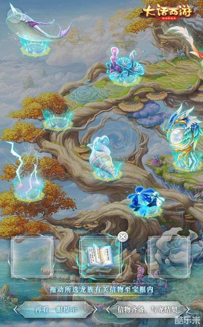 接下来,大家前往下一个页面,根据此前获得的三条提示寻找三件相对应的信物,拖动正确的信物到宝框内,即可解锁龙族角色与你的守护契约了!