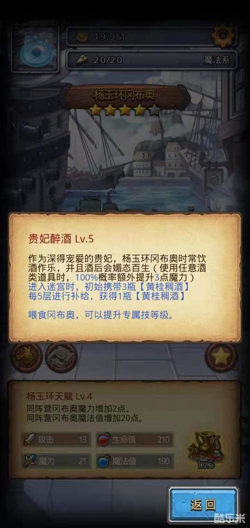 杨玉环以“回眸一笑百媚生,六宫粉黛无颜色”而“三千宠爱在一身”,可她也曾一时失宠而借酒浇愁,醉后忘其所以,放浪形骸。来到《不思议迷宫》后,她爱喝酒的特征也是一点没变。
