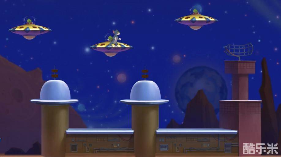 太空堡垒完美还原动画中的太空元素。在这里,玩家将再现动画中机器人挖掘奶酪的场景,也可以见到能帮助汤姆和杰瑞斗智斗勇的高科技设备。