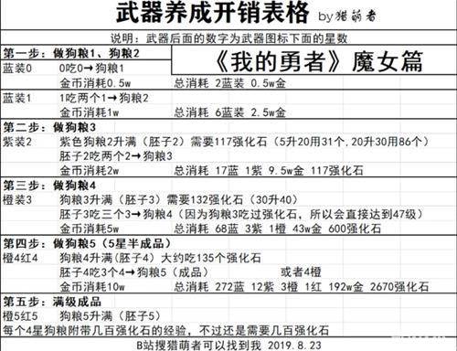 武器从0养到满5星满60级所有开销和需求表+以前做的武器强化新手向一图流。