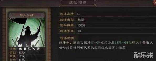 技能方面,由于本身依赖普攻,因此携带强攻来获取连击是不错的选择,也可由队友携带兵峰。另一种则是携带突击技能,如吕布传承的一骑当千,最大化一次普攻的收益,也是非常不错的。