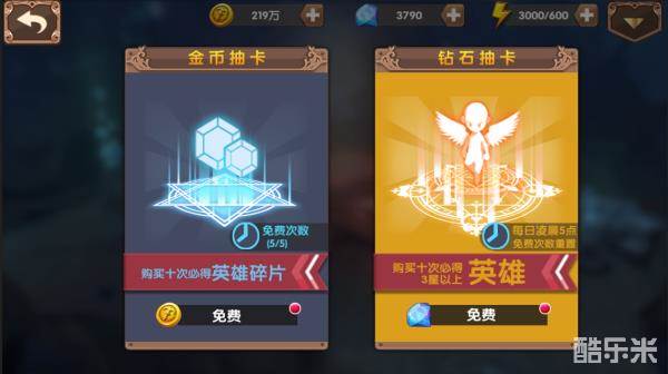 召唤系统有两种抽卡方式:金币抽卡、钻石抽卡