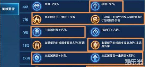 11级时,我选择第二个,这英雄技能可以逃跑,低血量加移速也容易被狙击,所以还不如点伤害,配合队友反打。个人喜好点吧