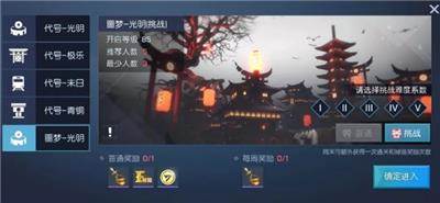 3、 噩梦光明副本仅有【挑战】难度。挑战难度可以选择I、II、III、IV、V共五种难度系数~而难度系数越高,复活次数也会越少。