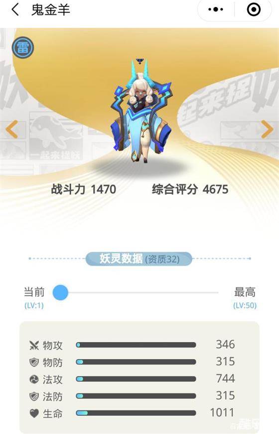 他在游戏中的定位为雷系法术输出,可以克制土、冰属性妖灵。被烈、圣属性克制。鬼金羊是目前开放的星宿中排名前几的妖怪之一,觉醒后在目前所有妖怪强度排名中都属一流。