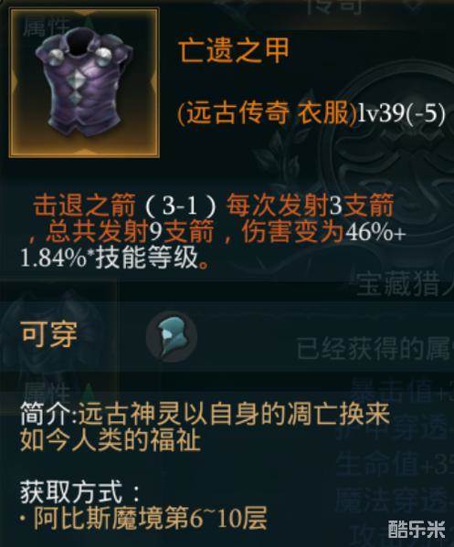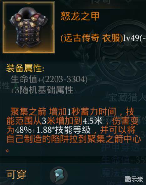 注:以上两件装备可以任选其一,如果使用了【怒龙之甲】那么3-1的【击退之箭】就要换做3-2的【聚集之箭】,两件衣服各有千秋,都是值得推荐的 装备,当然【怒龙之甲】更适合于走陷阱流 这里就不过多的描述了!