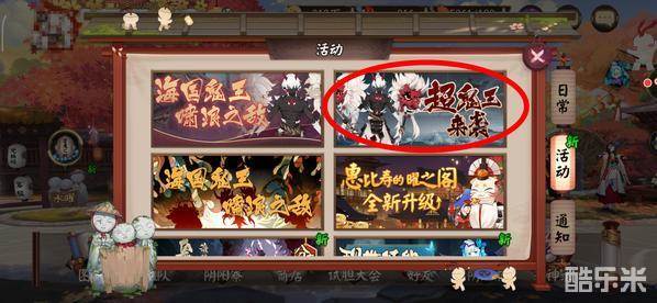 点击庭院内活动小纸人、石像活动、或者探索地图中的大岳丸超鬼王,就可以进入本次活动了。