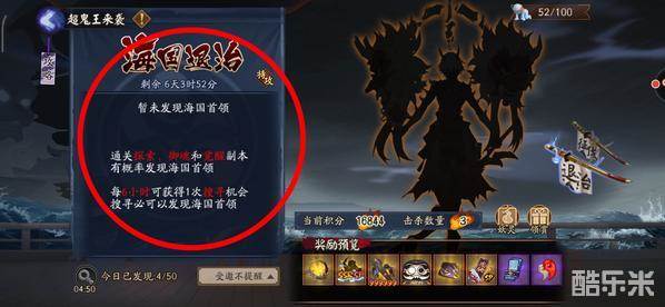 而海国首领发现方法为:通过探索、御魂、觉醒副本,或者鬼王“搜寻”功能。(一次只能发现一个鬼王)