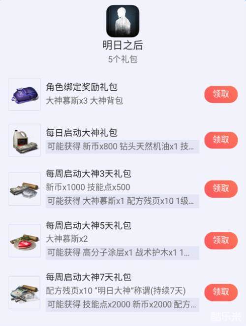 参与方式非常简单:在网易大神绑定《明日之后》游戏角色,打开《明日之后》圈子新版福利中心,即可领取角色绑定奖励礼包——大神背包及大神慕斯*3;每日登录网易大神,还可以领取每日礼包,随机获得奖池中的一件物品。每周累计启动大神3天、5天、7天,更有额外固定奖励等你拿,还有概率获得奖池中的随机物品哦!