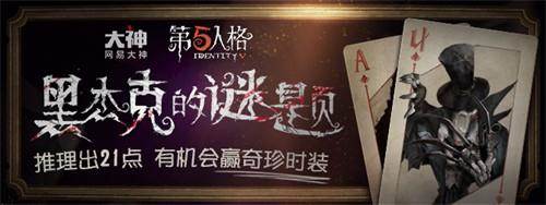 推理出21点,赢奇珍时装!8月22日至9月4日,进入网易大神《第五人格》圈子热门频道,即可参与“黑杰克的谜题”活动,赢奇珍时装和碎片奖励!