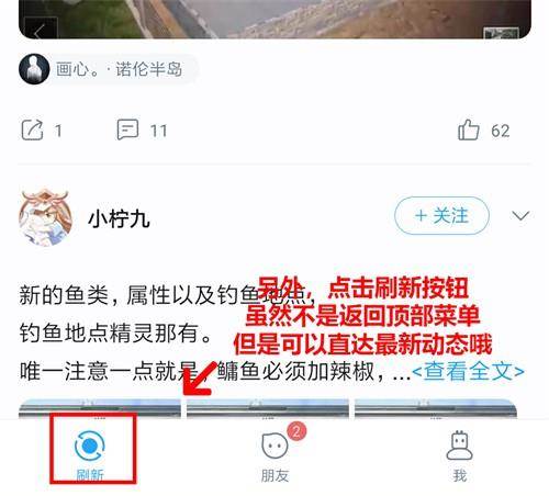 另外,点击刷新按钮虽然不是返回顶部菜单,但可以直达最新动态,也就回到最上方啦!