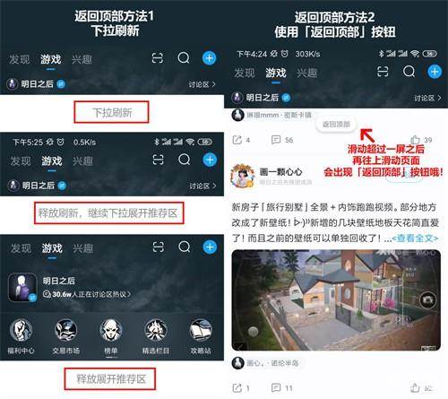 怎样返回顶部,找到福利中心呢?方法有两个:直接下拉至展开推荐区;在滑动超过一个屏幕后,向上滑动页面,即可发现“返回顶部”按钮。