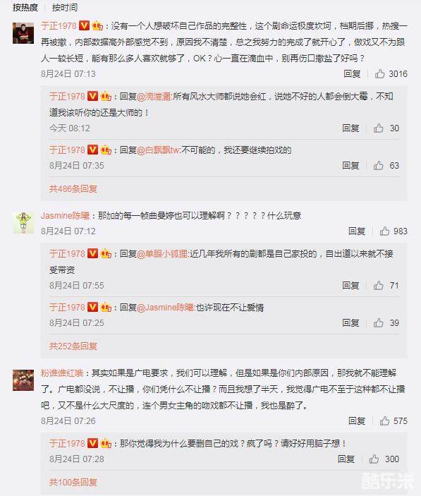 至于是什么不可抗力的原因,于正并没有正面回答,很多网友猜测可能是因为这部剧设计民国抗日背景,男女主角又是军人,涉及情爱有损军人的正能量形象,因此删减了亲密戏。但军人就不能拥有亲密的爱情了吗?这一点还是令很多人不解。