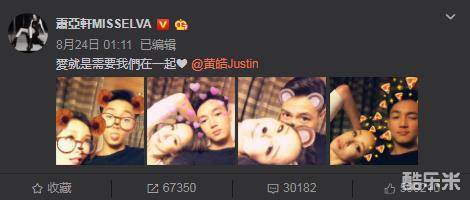 8月24日,萧亚轩在她生日当天在微博大方公布新恋情,晒出与男友合照,并圈出现任小16岁男友黄皓,配文:“爱就是需要我们在一起。”