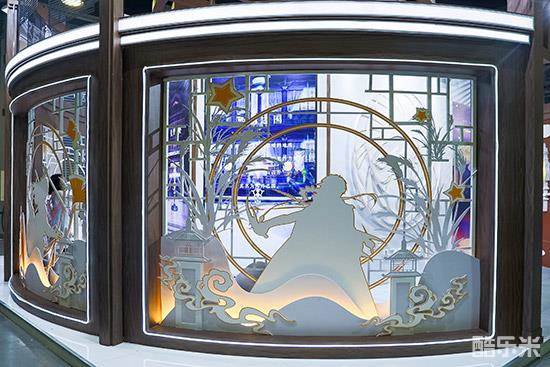 在细节方面,展台在木质结构上运用了“拱门”元素、“回”形纹样,镂空墙面背后隐约透出“西月国”的设定背景,体现出恋与对此次展台搭建的用心。