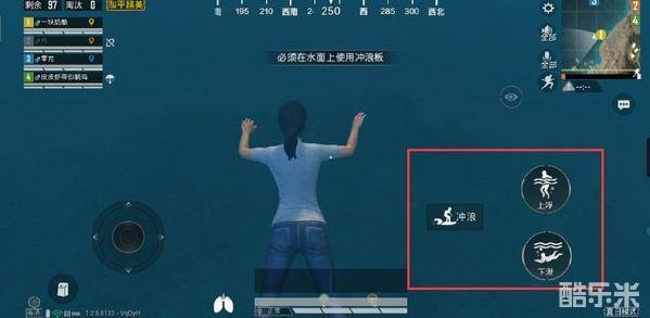 既然是冲浪板,那就必须要在有水的地方才能使用。当玩家处于陆地、浅水区域和浅水状态时时不可以进行使用的。当玩家处于水面上的游泳状态时就会发现在屏幕上有“冲浪”的图标文字提示。玩家点击该图标就可以处于冲浪状态。当玩家“冲上”陆地时或手动选择“下车”,冲浪板就会自动收纳起来。