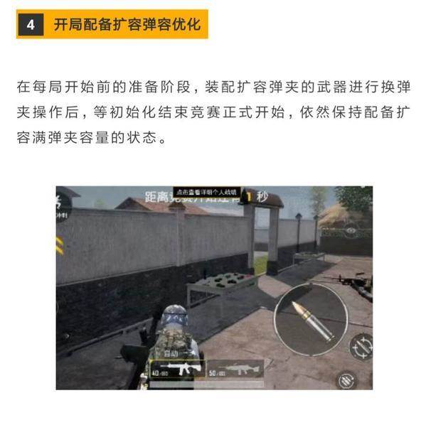 第四种改动则为开局配备扩容弹匣的容量优化。在团队竞技每局开始前的装备阶段,装配扩容弹匣的武器进行换弹匣操作后,等初始化结束竞赛正式开始,依然会保持配备扩容弹匣容量的状态。