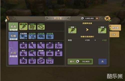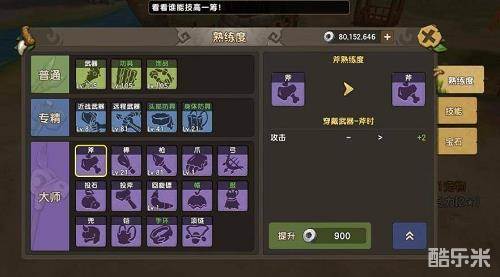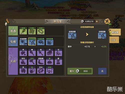 想要成为石器世界中的武器大师,你首先需要提升自己的武器熟练度,随着熟练度的提升武器的能力也会大大增加哦、