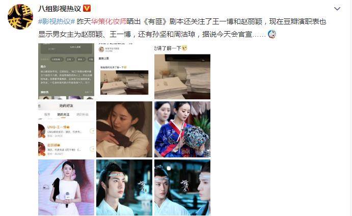 一开始只是营销号的热议,但到8月23日,#有匪#再上热搜,赵丽颖和王一博主演《有匪》的消息又被推上高潮。华策的化妆师晒出《有匪》的剧本,并关注了赵丽颖和王一博,难道两人接下剧本已经实锤了?还是说马上就要官宣了?