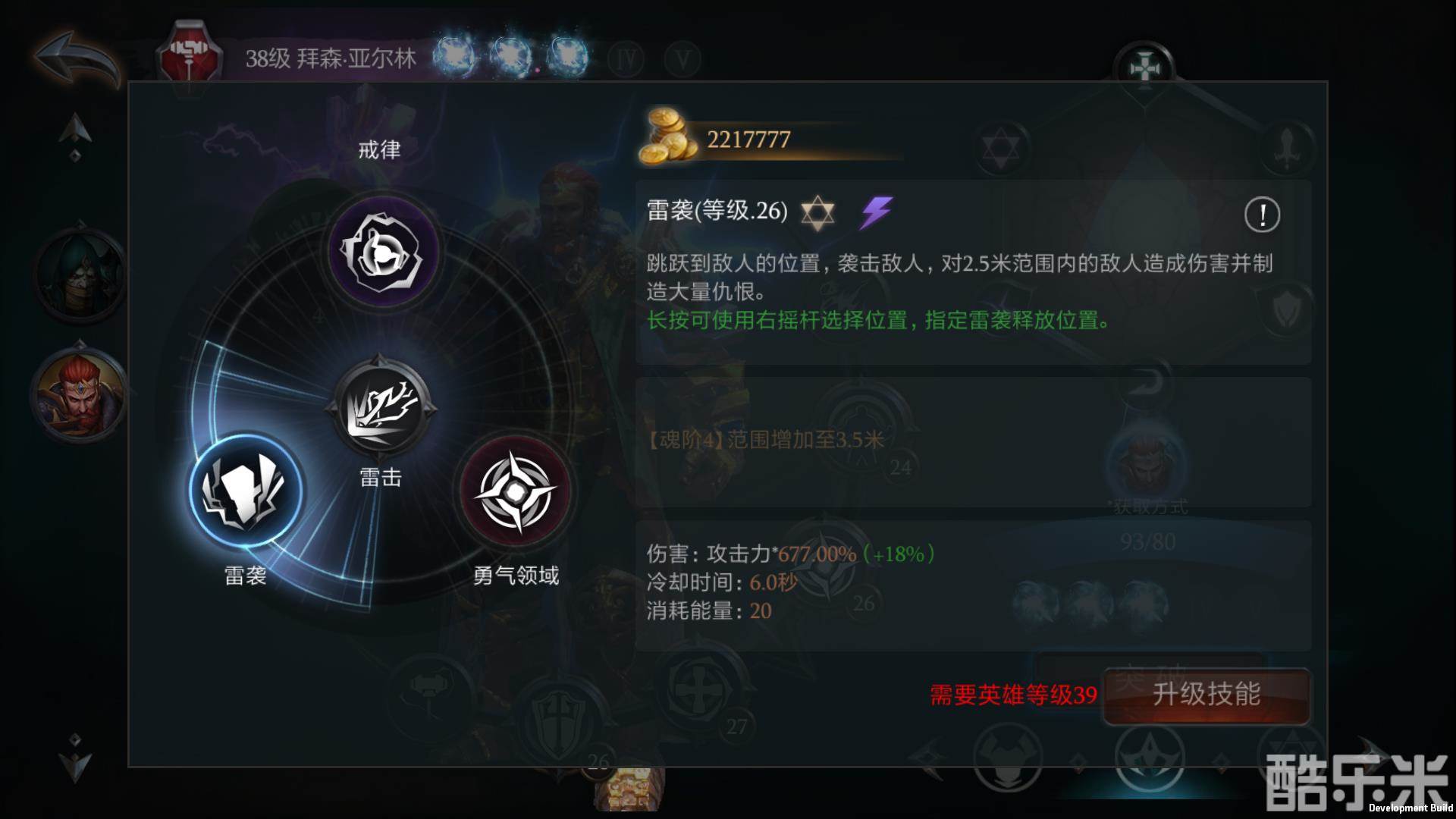 这技能特点就非常明显了,让拜森·亚尔林普攻或技能都能造成额外的雷系范围伤害,在打成片的野怪时效果非常显著;另外三技能雷袭的基础伤害值达到了惊人的677%,这让拜森·亚尔林在单挑BOSS时也有足够的资本!