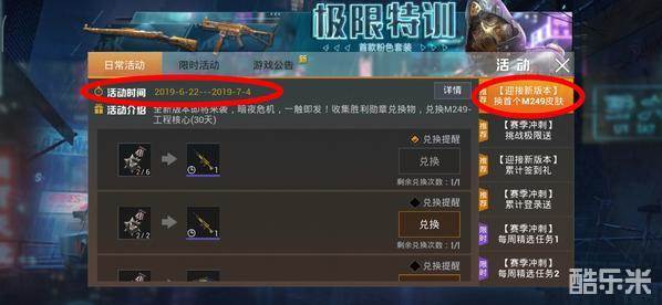 首先我们需要在日常活动栏中找到该活动兑换点“【迎接新版本】换首个M249皮肤”。