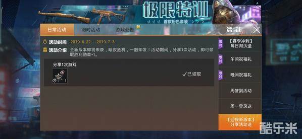 2、在6月22日到7月3日,分享活动,可以获得1枚勋章。